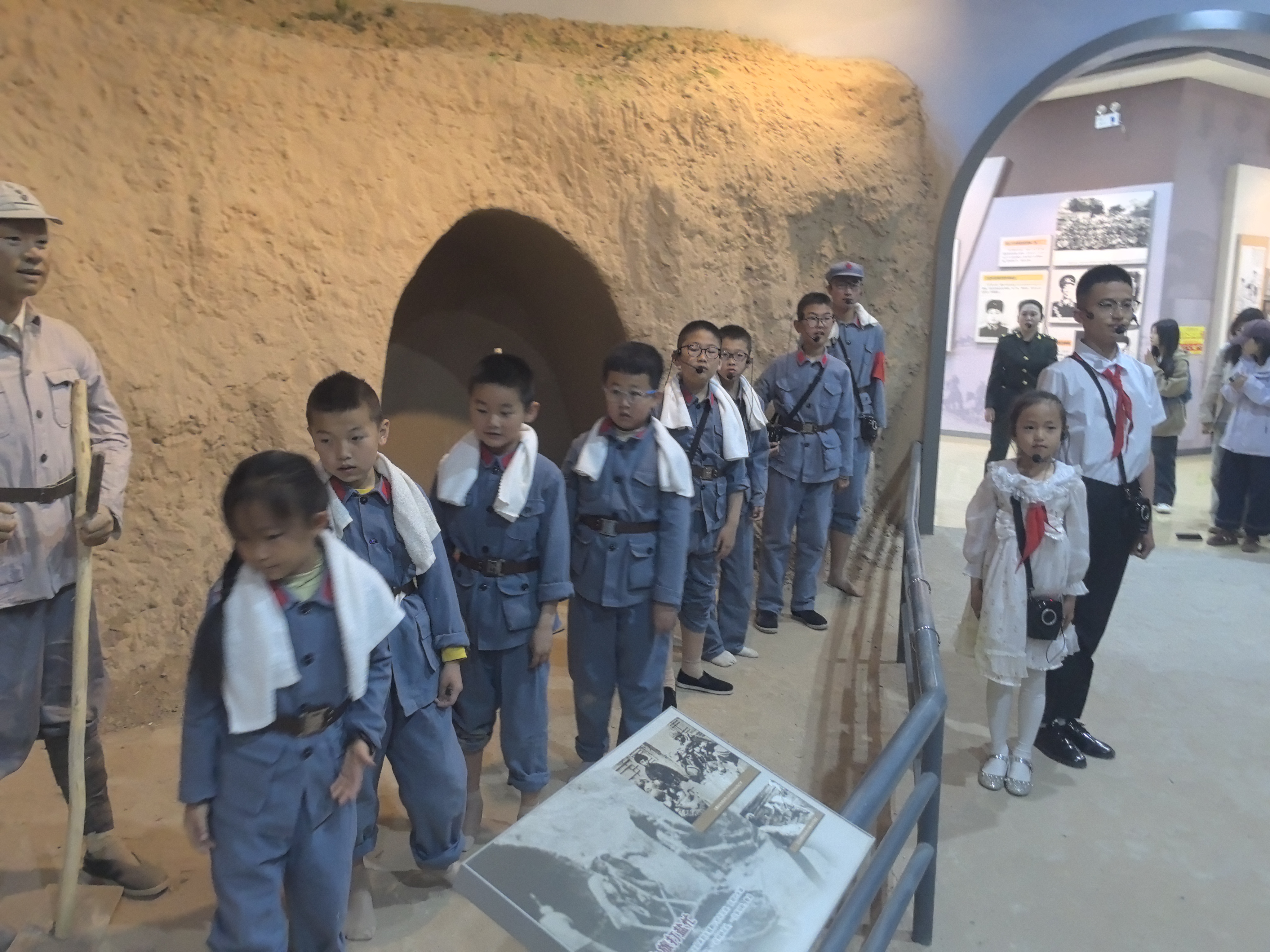 教学科研实践实习基地盐池革命烈士纪念馆。首先,同学们在老师的带领下,向革命先烈敬献了花篮,缅怀先烈,传承红色基因。之后,同学们跟着讲解员的脚步,通过观看珍贵的历史文物、图片和文献资料,深入了解了盐池光荣的革命史和珍贵的革命文物。在二楼展厅内,红领巾小小讲解员们还为同学们表演了根据1941年《解放日报》刊登三五九旅四支队在盐池挑灯连夜打盐的故事创编的原创红色讲解剧《盐耙耙命根根盐耙耙》,让同学们沉浸式学习了抗日战争时期边区各族军民在中国共产党的领导下,团结一心、支援前线的光辉岁月。生动而感人表演,让在场的同学们深受感动,为小小讲解员们精彩的表演与革命烈士的革命精神发出了雷鸣般的掌声。