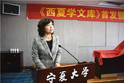 自治区原政协副主席陈育宁,中国社科院学部委员史金波为《西夏学文库》揭幕。