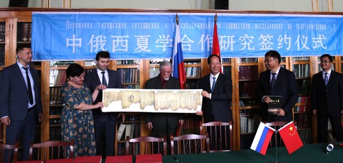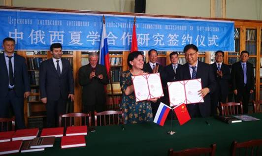 2018年8月5日,中俄西夏学合作研究签约仪式在俄罗斯圣彼得堡举行,宁夏大学中俄西夏学联合研究所和俄罗斯科学院俄中西夏学联合研究所签订了新一轮合作协议。宁夏回族自治区党委书记石泰峰、中国驻圣彼得堡总领馆副总领事张树友、俄罗斯科学院院士缅希科夫(Vladimir S. Myasnikov)、圣彼得堡市外事局副局长阿布巴卡罗夫(ArbiA. Abubakarov)、俄罗斯科学院东方文献研究所所长波波娃等参加了签约活动。