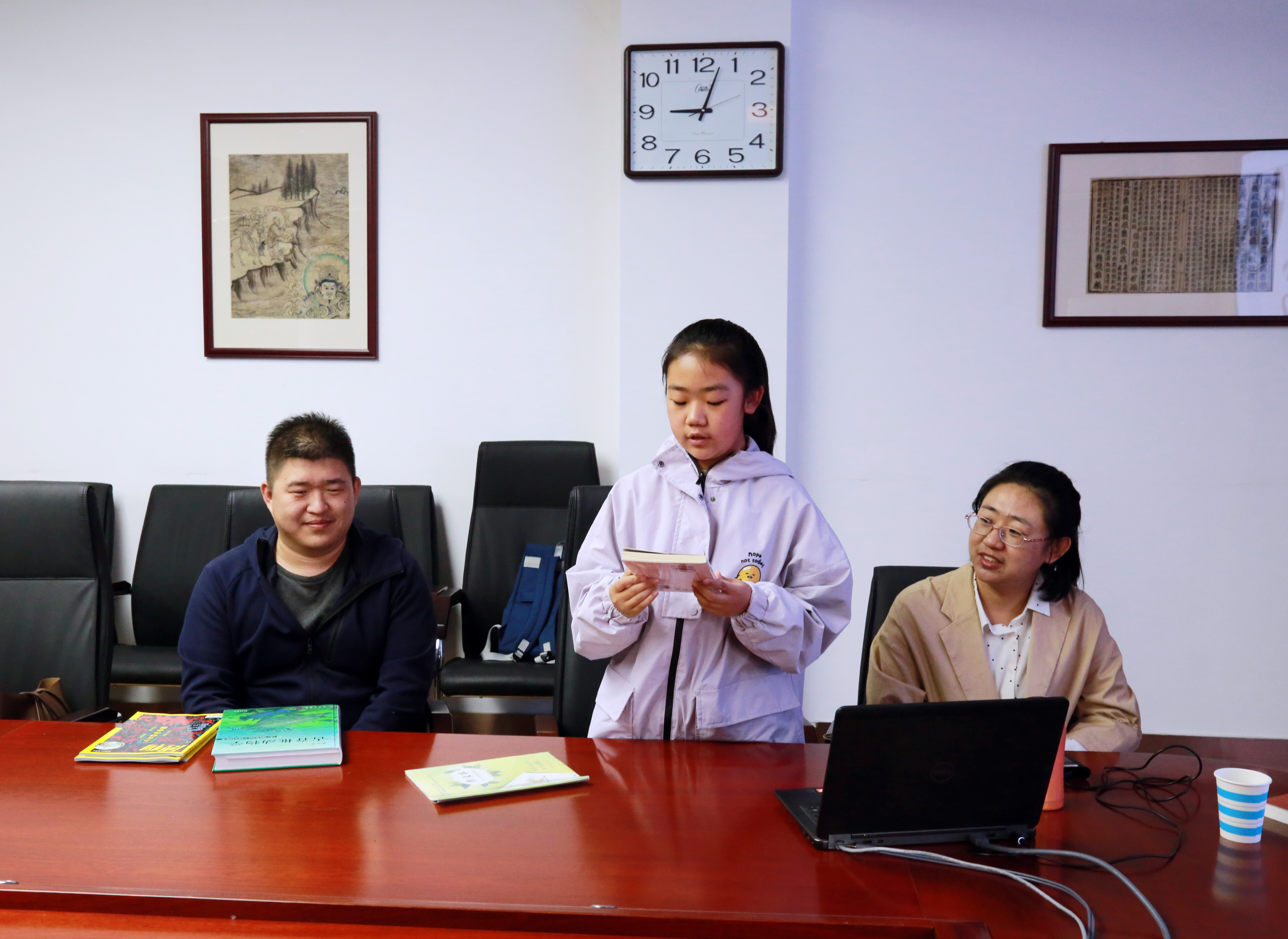 潘洁老师的女儿陈玥馨小朋友首先向大家分享了自己的读书心得,讲述在阅读《三国演义》中汲取到的精神营养,让在场师生都感受到她的读书热情。随后在场师生依次向大家交流了自己带来的书籍,推荐的图书种类繁多,各具特色,不仅有专业书籍,也有小说、科普读物,或是讲述推荐图书的重点内容和作者的主要观点,或是传递自己对学习和生活的理解,或是诠释书中蕴含的思考与智慧,或是分享了书中富有哲理的名言警句,师生们踊跃发言,相互交流点评。通过这次读书分享会,开阔了大家的阅读视野,交流了阅读方法,掌握了新知、受益了成长。