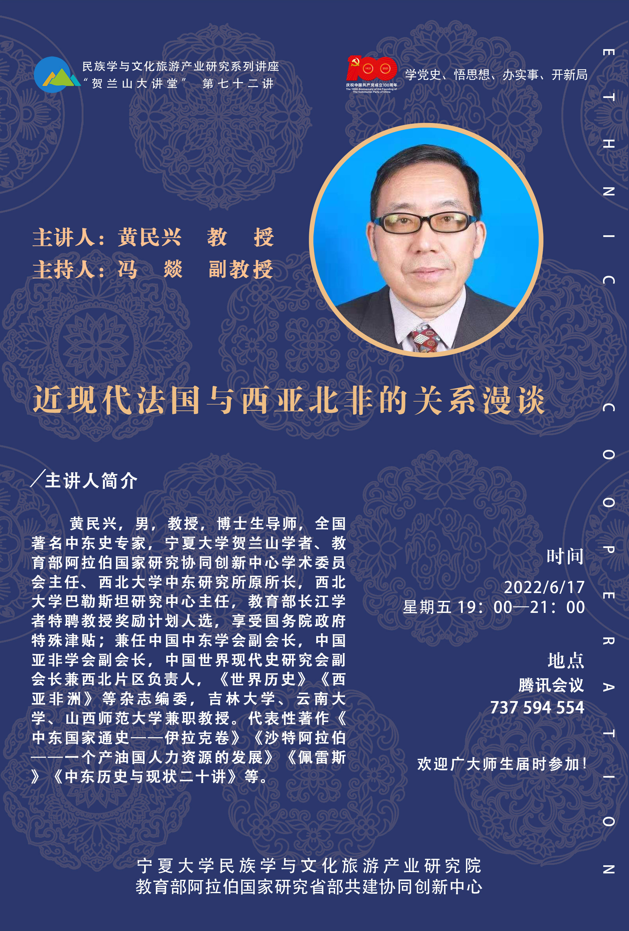 黄民兴,男,教授,博士生导师,全国著名中东史专家,宁夏大学贺兰山学者、教育部阿拉伯国家研究协同创新中心学术委员会主任、西北大学中东研究所原所长,西北大学巴勒斯坦研究中心主任,国家级人才工程人选,享受国务院政府特殊津贴;兼任中国中东学会副会长,中国亚非学会副会长,中国世界现代史研究会副会长兼西北片区负责人,《世界历史》《西亚非洲》等杂志编委,吉林大学、云南大学、山西师范大学兼职教授。代表性著作《中东国家通史——伊拉克卷》《沙特阿拉伯——一个产油国人力资源的发展》《佩雷斯》《中东历史与现状二十讲》等。