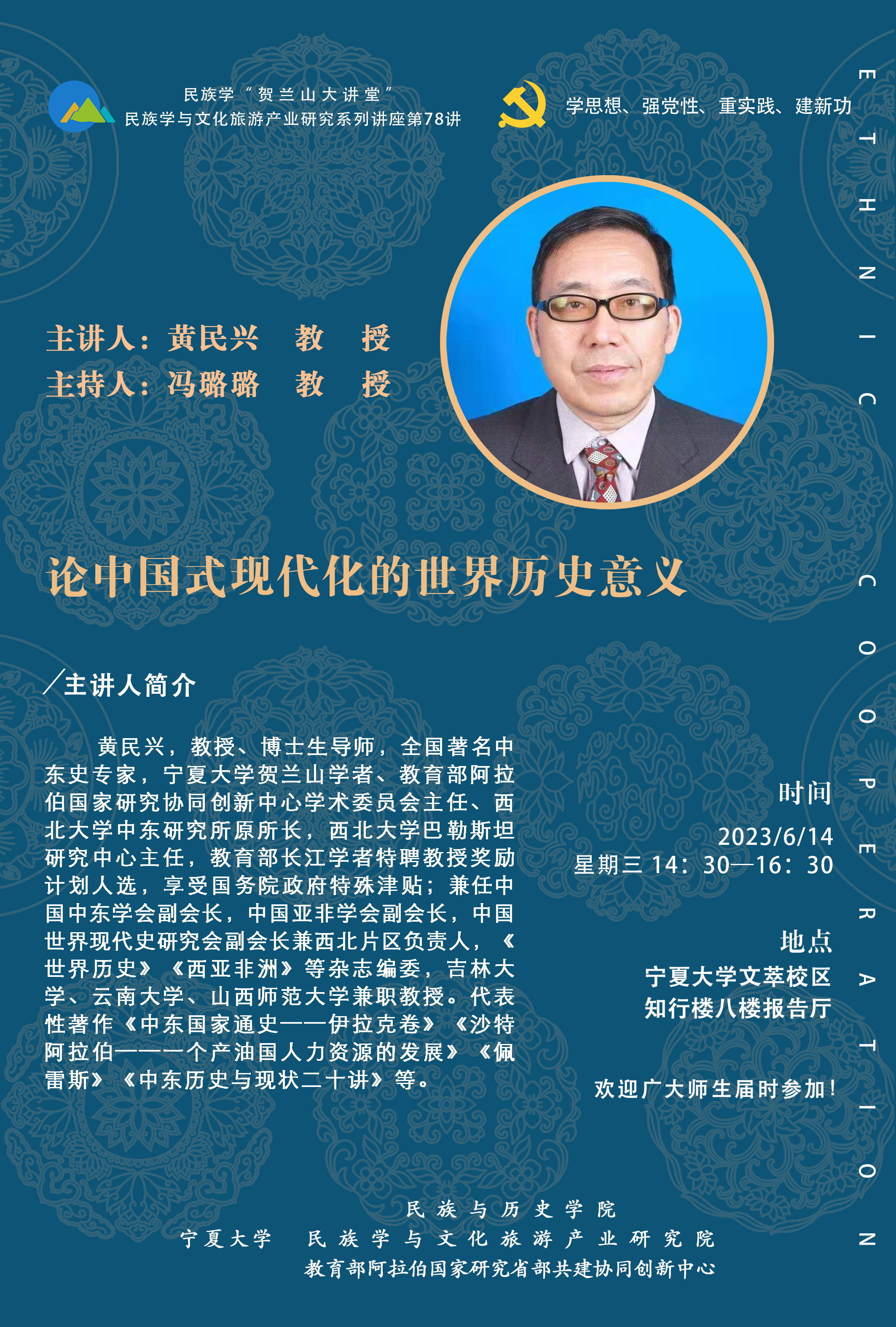 黄民兴,教授,博士生导师,全国著名中东史专家,宁夏大学贺兰山学者、教育部阿拉伯国家研究协同创新中心学术委员会主任、西北大学中东研究所原所长,西北大学巴勒斯坦研究中心主任,享受国务院政府特殊津贴;兼任中国中东学会副会长,中国亚非学会副会长,中国世界现代史研究会副会长兼西北片区负责人,《世界历史》《西亚非洲》等杂志编委,吉林大学、云南大学、山西师范大学兼职教授。代表性著作《中东国家通史——伊拉克卷》《沙特阿拉伯——一个产油国人力资源的发展》《佩雷斯》《中东历史与现状二十讲》等。