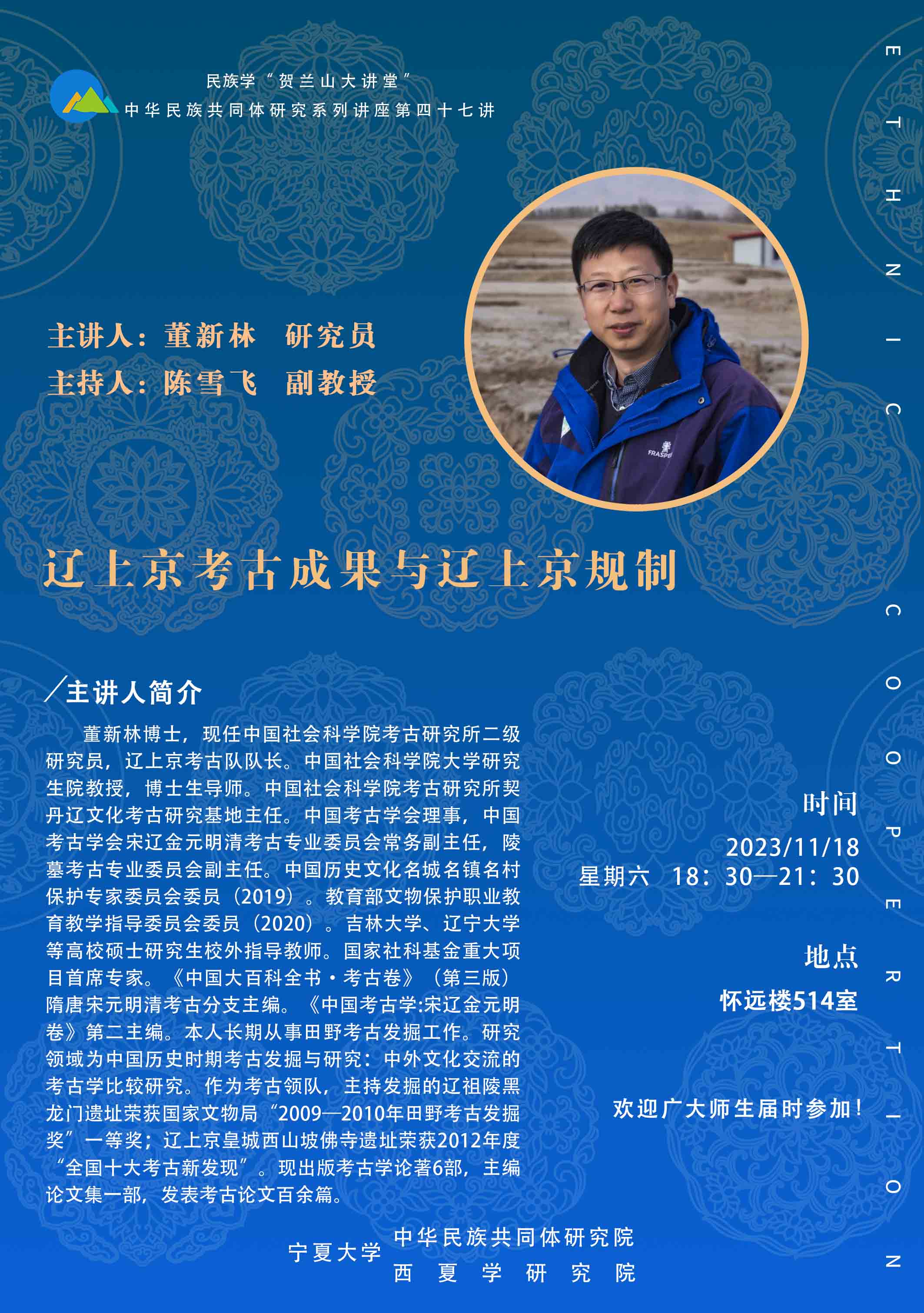 董新林博士,现任中国社会科学院考古研究所二级研究员,辽上京考古队队长。中国社会科学院大学研究生院教授,博士生导师。中国社会科学院考古研究所契丹辽文化考古研究基地主任。中国考古学会理事,中国考古学会宋辽金元明清考古专业委员会常务副主任,陵墓考古专业委员会副主任。中国历史文化名城名镇名村保护专家委员会委员(2019)。教育部文物保护职业教育教学指导委员会委员(2020)。吉林大学、辽宁大学等高校硕士研究生校外指导教师。国家社科基金重大项目首席专家。《中国大百科全书·考古卷》(第三版)隋唐宋元明清考古分支主编。《中国考古学:宋辽金元明卷》第二主编。本人长期从事田野考古发掘工作。研究领域为中国历史时期考古发掘与研究:中外文化交流的考古学比较研究。作为考古领队,主持发掘的辽祖陵黑龙门遗址荣获国家文物局“2009—2010年田野考古发掘奖”一等奖;辽上京皇城西山坡佛寺遗址荣获2012年度“全国十大考古新发现”。现出版考古学论著6部,主编论文集一部,发表考古论文百余篇。